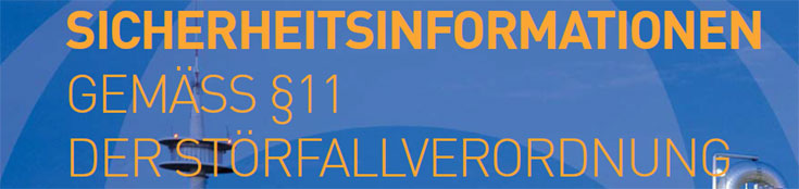 Wir sind jedoch gemäß § 11 der Störfallverordnung verpflichtet, Nachbarn, Besucher, Mitarbeiter und Partnerfirmen über das richtige Verhalten in Gefahrensituationen zu informieren.