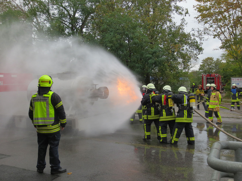 Im Gefahren- oder Alarmfall betreibt die Werksfeuerwehr natürlich auch Schadensbekämpfung und –begrenzung. Sie bildet außerdem interne und externe Mitarbeiter aus und bleibt durch zum Teil aufwändig inszenierte Notfall-Übungen stets up to date.